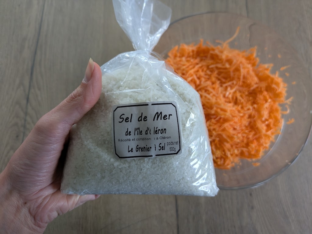 - Du sel, ici 36 g (soit 2 % du poids des carottes)